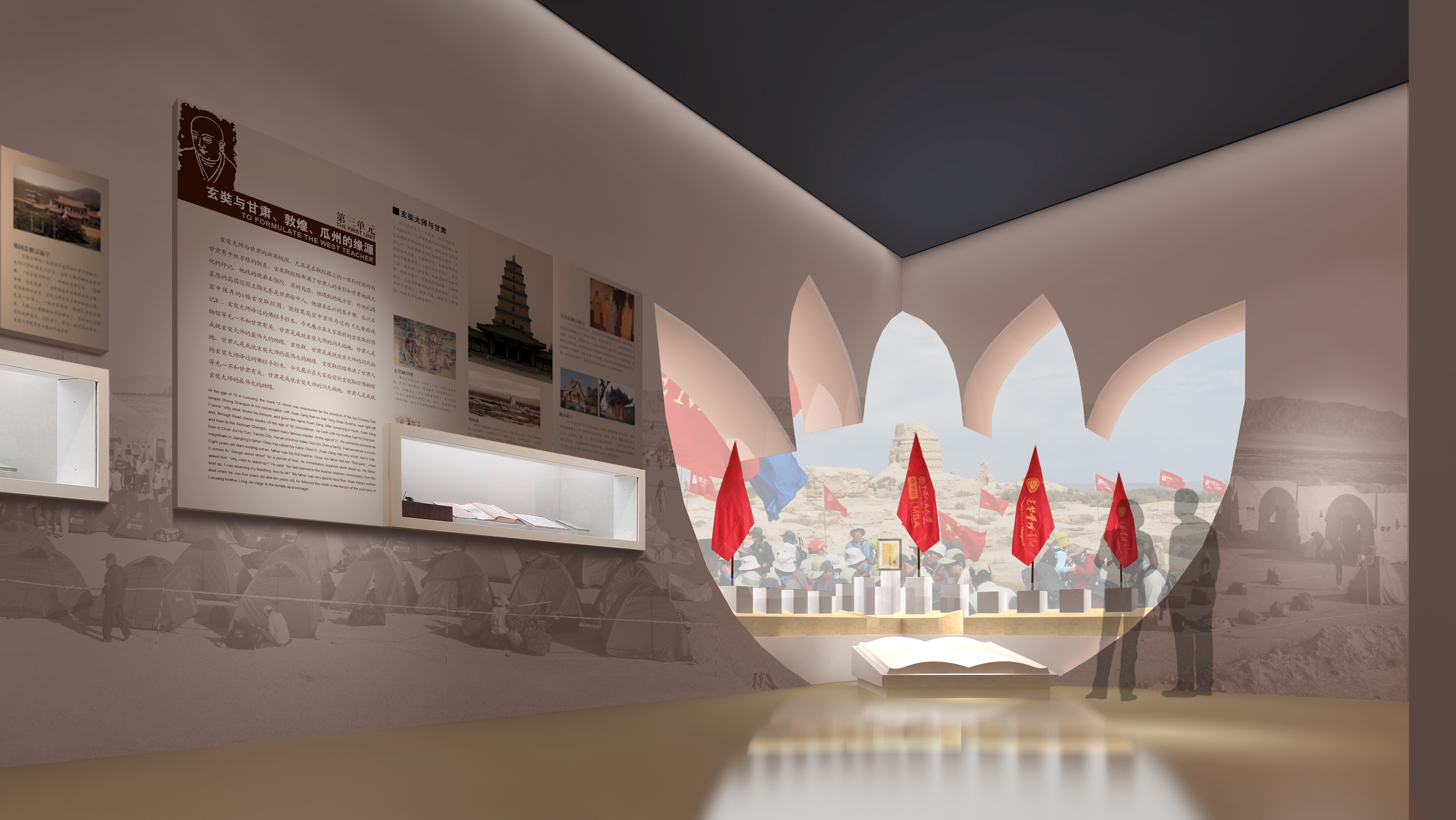 玄奘取經(jīng)博物館以深刻揭示玄奘文化內(nèi)涵,弘揚、宣傳、研究、展示、普及玄奘精神和瓜州歷史文化為主,設(shè)計上以合適的形式語言和空間氛圍來詮釋玄奘大師作為“民族脊梁”的精神高旨。