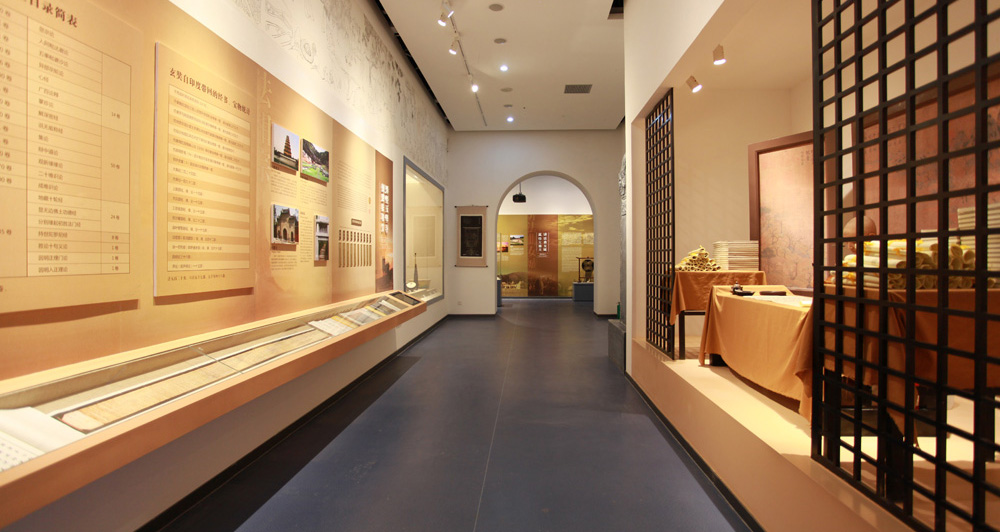 玄奘取經(jīng)博物館位于甘肅省瓜州縣離縣城東2.7公里與313國道相交通往敦煌的丁字路口處,占地面積215畝,建筑面積4600平方米。玄奘取經(jīng)博物館由三大部分組成,第一部分為服務(wù)區(qū)。第二部分為參觀區(qū),由玄奘取經(jīng)博物館主展廳,主展廳前的主題雕塑,精華洞窟陳列館和"玄奘西行銅雕"、"心經(jīng)長碑廊"、"玄奘取經(jīng)贊"、張芝紀念館等組成。第三部分為朝圣區(qū),由玄奘紀念塔,玄奘紀念堂,影視廳,觀音殿,演出廳等內(nèi)容組成。整個館區(qū)以大唐建筑風格為基調(diào),以園林景觀為背景,呈現(xiàn)出西北地域特色。