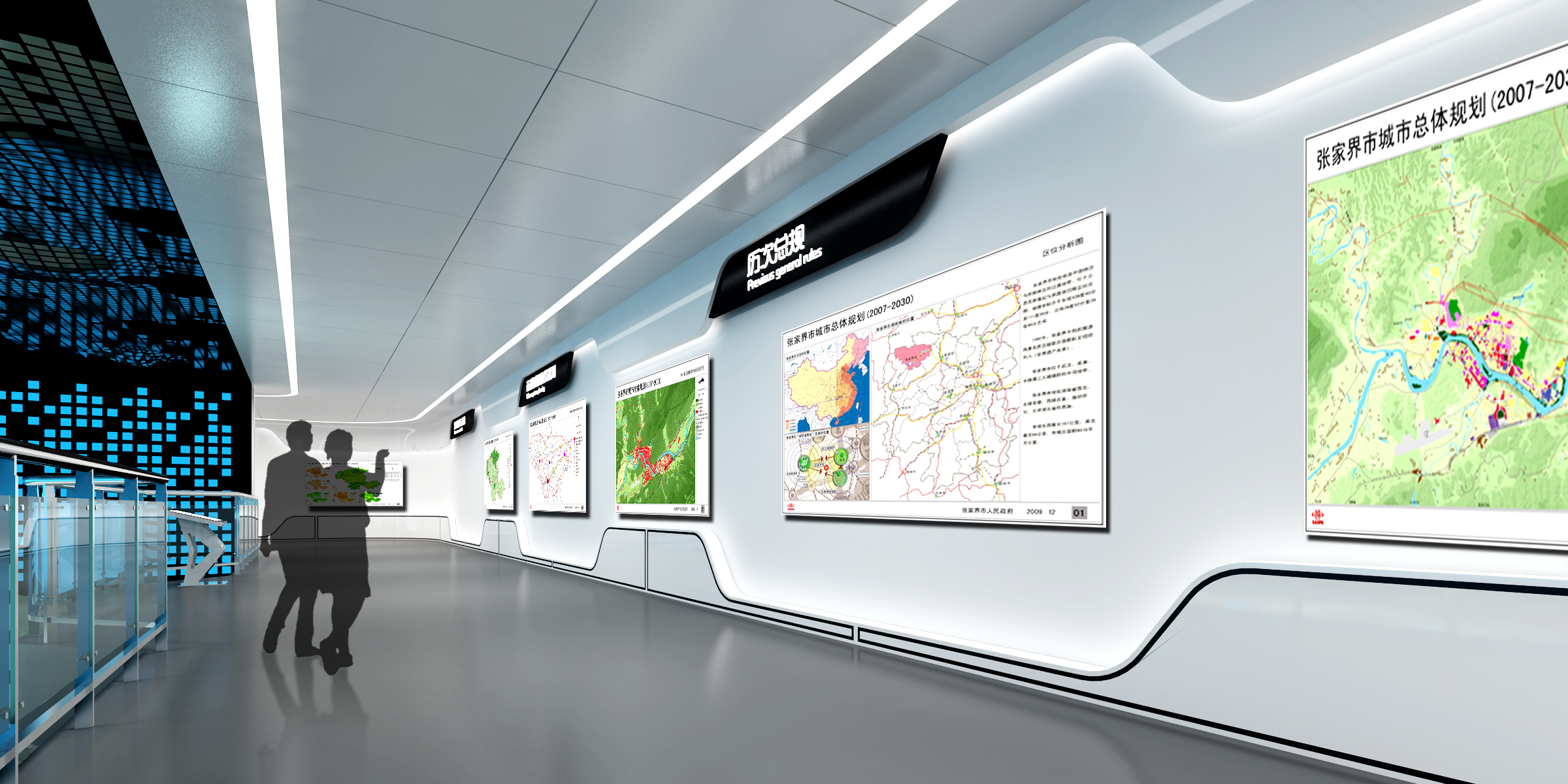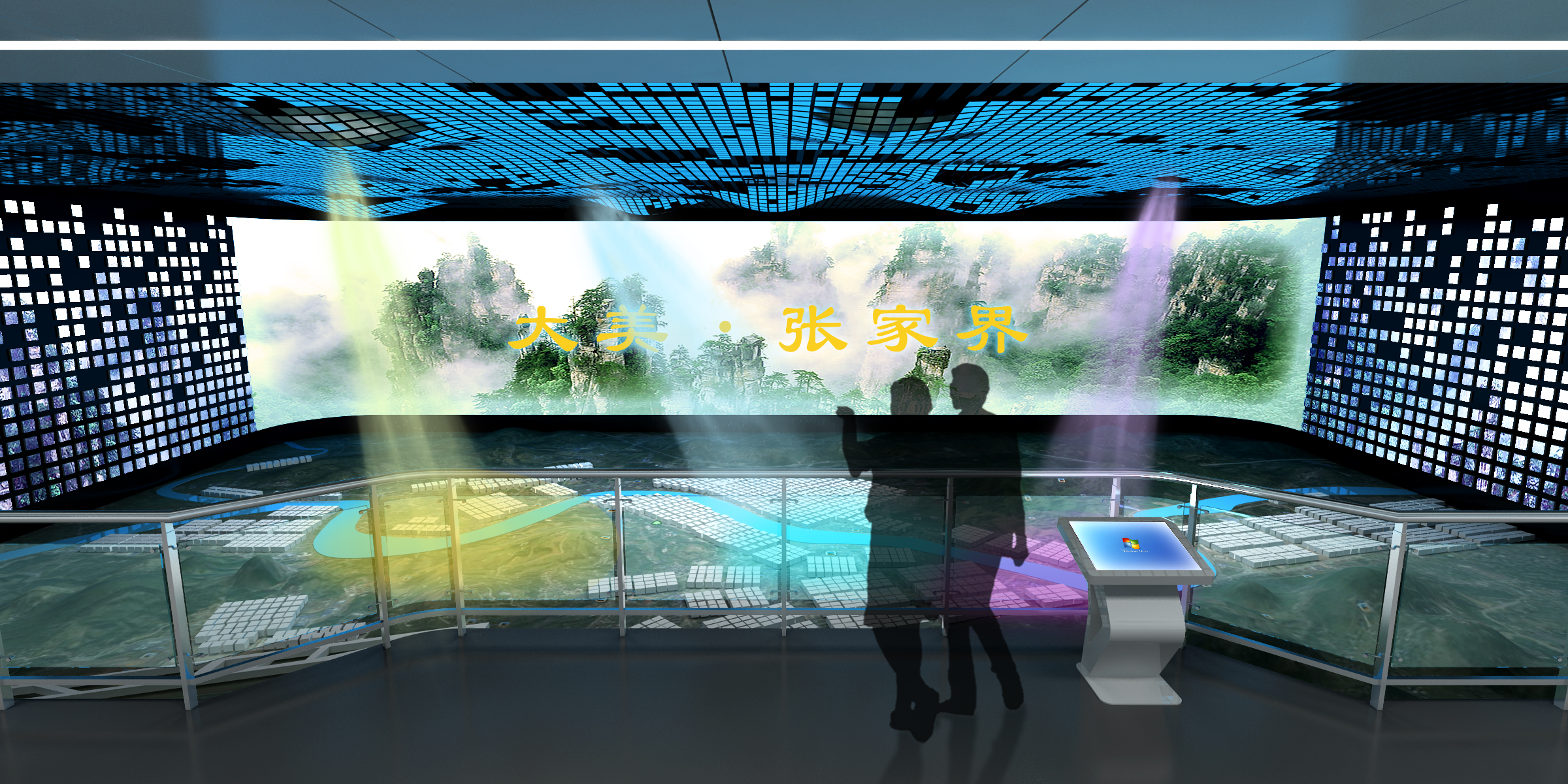 張家界城建規(guī)劃館,總建筑面積1959.6平方米,其中布展面積約1800平方米。整個展館按照歷史、現(xiàn)在、未來的時間線索,以“人間勝境,別有洞天”為主題,采用大量高科技展陳手段,將互動游戲、大型多媒體互動沙盤秀、VR漂流體驗、數(shù)字沙盤、未來影院等現(xiàn)代聲光電技術融入多項展示環(huán)節(jié),集城市展覽、規(guī)劃公示、咨詢交流、宣傳教育等多功能于一體,展示張家界悠久獨特的地域文化、奇山異水的絕美景觀和波瀾壯闊的城市建設,并暢望美好未來。