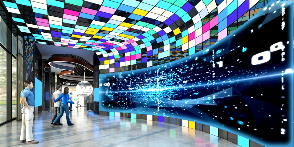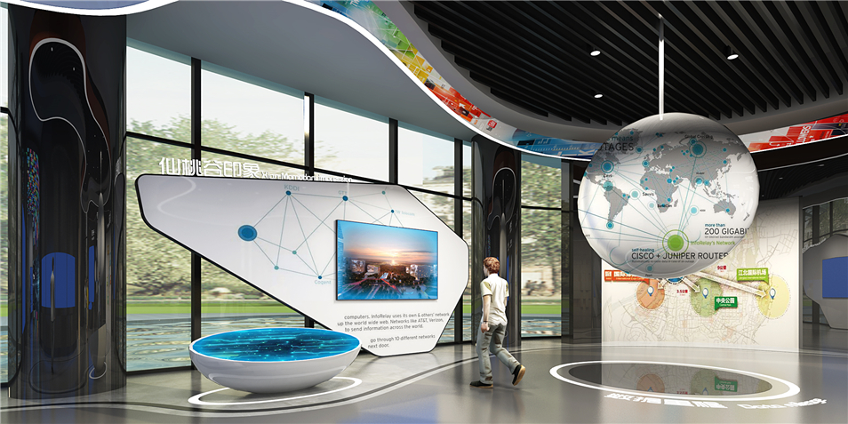 重慶仙桃國(guó)際數(shù)據(jù)谷展示體驗(yàn)中心,展廳主要布局了序廳、仙桃印象、規(guī)劃宏圖、創(chuàng)新平臺(tái)、綜合產(chǎn)品體驗(yàn)區(qū)、幻彩走廊、產(chǎn)業(yè)洽談推進(jìn)區(qū)、影院共八大主題展區(qū),宣傳數(shù)據(jù)谷規(guī)劃理念和成果,是接待來(lái)訪領(lǐng)導(dǎo)、企業(yè)、嘉賓的高科技會(huì)客廳。