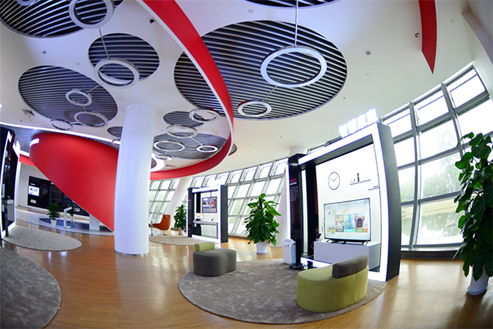 華數(shù)企業(yè)展廳暨國(guó)家廣電總局?jǐn)?shù)字電視開放實(shí)驗(yàn)室,位于杭州市華數(shù)白馬湖數(shù)字電視產(chǎn)業(yè)園H 樓一樓, 兼具展覽展示、貴賓接待、創(chuàng)新實(shí)驗(yàn)、培訓(xùn)指導(dǎo)、訪談發(fā)布等功能。展廳主要以多媒體展項(xiàng)為主,其中尤以OLED大型雕塑最為大氣磅礴,由65臺(tái)曲面柔性OLED拼接而成,類似雕塑在全球亦屈指可數(shù)。