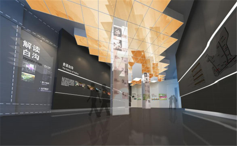 白溝規(guī)劃展覽館布展面積約3500平方米,展館展示區(qū)域共兩層,一層分為序廳、解讀白溝、聚焦白溝、擎畫白溝四部分,二層分為規(guī)劃白溝、實力白溝、筑夢白溝三部分。整個展廳以“和諧·跨越·大白溝”為主題,集城市展覽、規(guī)劃公示、宣傳教育等多功能于一體,展示白溝的城市歷史、建設成就和未來規(guī)劃等。