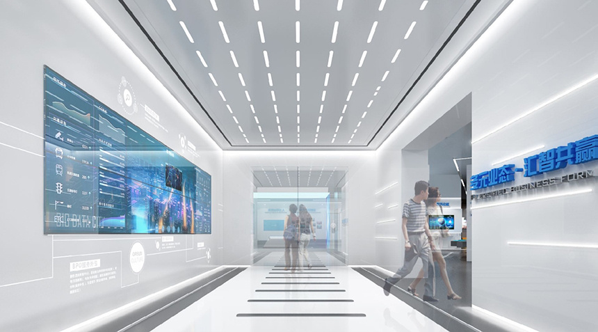 永川大數(shù)據(jù)展示中心位于重慶市永川區(qū)大數(shù)據(jù)產(chǎn)業(yè)園,展館采用現(xiàn)代簡約風(fēng),將像素和數(shù)據(jù)流的概念融入空間。展品與傳統(tǒng)形式區(qū)分開,利用多種媒體手法,通過互動(dòng)體驗(yàn)吸引參觀者的注意力。展項(xiàng)內(nèi)容可隨大數(shù)據(jù)的發(fā)展與變化持續(xù)更新。