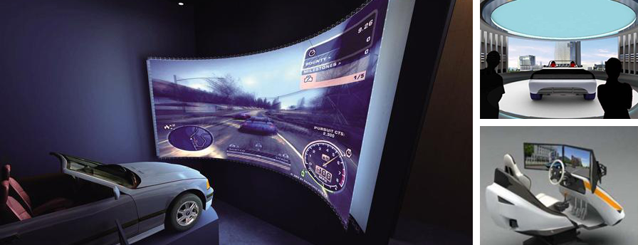 汽車自駕系統(tǒng)利用現(xiàn)代高科技手段如:三維圖像即時生成技術(shù)、汽車動力學仿真物理系統(tǒng)、大視場顯示技術(shù)(如多通道立體投影系統(tǒng))、六自由度運動平臺(或三自由度運動平臺)、用戶輸入硬件系統(tǒng)、立體聲音響、中控系統(tǒng)等,讓體驗者在一個虛擬的駕駛環(huán)境中,感受到接近真實效果的視覺、聽覺和體感的汽車駕駛體驗。