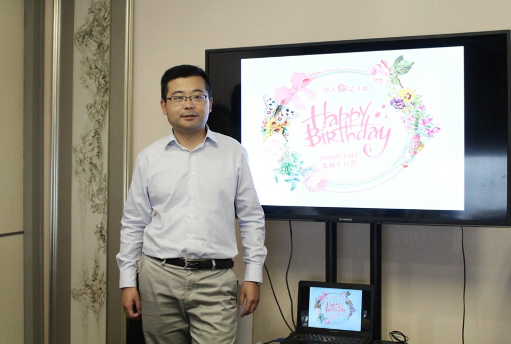 下午三點(diǎn)半,隨著本期主持人、工會(huì)主席嚴(yán)兆杰熱情洋溢的開(kāi)場(chǎng)致辭,現(xiàn)場(chǎng)電視播放起暖場(chǎng)音樂(lè)拉開(kāi)了生日會(huì)的序幕。壽星齊聚,電視同步播出壽星風(fēng)采;點(diǎn)燃蠟燭,同事們發(fā)來(lái)視頻送上祝語(yǔ);許下心愿,說(shuō)出對(duì)工作的愿望與期待;歌聲響起,大家在歡聲笑語(yǔ)中品嘗蛋糕不亦樂(lè)乎。