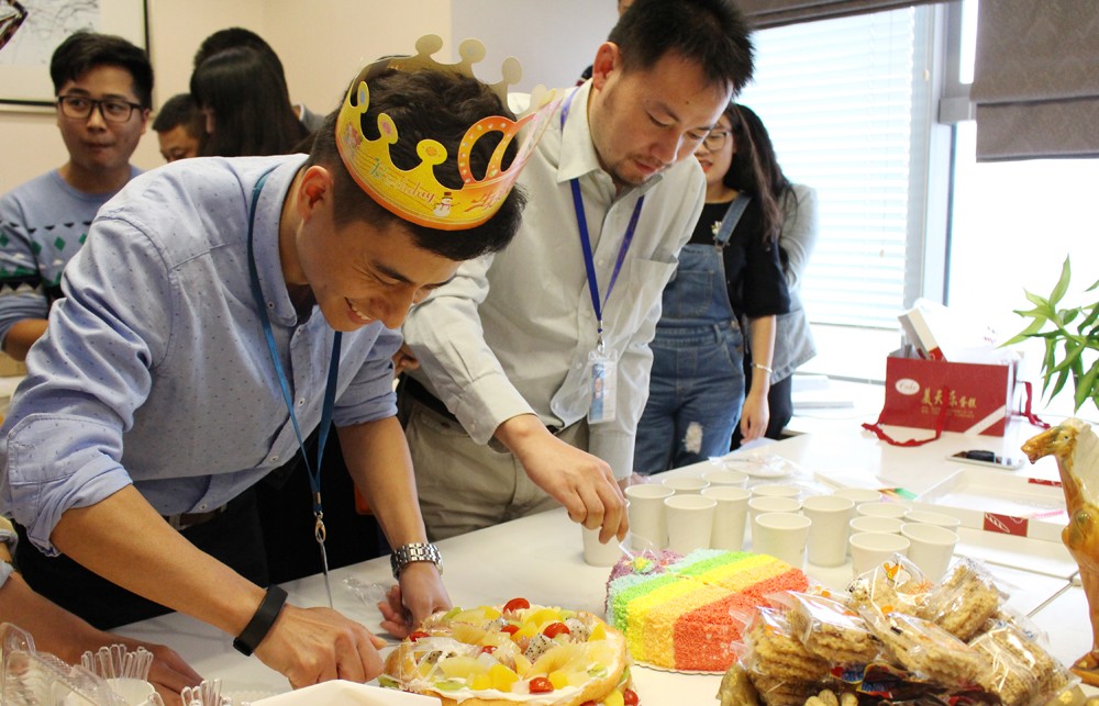 每月一次生日聚會(huì),溫情而又熱烈,是公司人才發(fā)展理念的一個(gè)側(cè)面,也是公司感謝員工辛勤付出的一種方式。從七月份開(kāi)始,公司人事部?jī)晌煌屡c工會(huì)協(xié)商帶頭籌辦起這種全新的聚會(huì)方式,至今四期,內(nèi)容豐富有趣,受到了同事們的一致好評(píng)。