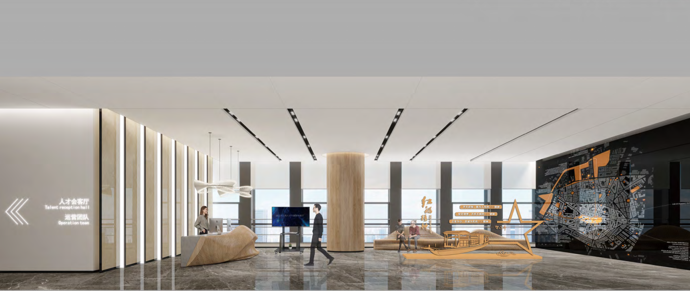 2019年3月5日召開的十三屆全國人大二次會議上,國務(wù)院總理李克強(qiáng)作政府工作報告指出,將長三角區(qū)域一體化發(fā)展上升為國家戰(zhàn)略,編制實(shí)施發(fā)展規(guī)劃綱要。浙江省省委人才工作領(lǐng)導(dǎo)小組辦公室與嘉興市委聯(lián)合出臺《嘉興市服務(wù)長三角人才一體化發(fā)展的意見(試行)》,聚焦“五個一體化”,推出以“人才”為核心的浙江長三角人才大廈項(xiàng)目。 由金螳螂文化擔(dān)任設(shè)計與施工的浙江長三角人才大廈項(xiàng)目,位于嘉興市南湖區(qū)國際金融廣場金融大廈B座的21、22和23層,每層約1700平方米。其中21層是長三角人才項(xiàng)目集聚區(qū);22層是長三角企業(yè)集聚區(qū)、高校聯(lián)合會、協(xié)會集聚區(qū);23層是長三角人才數(shù)字展示中心、長三角人才會客廳、人才驛站、公共服務(wù)信息平臺、嘉興長三角人才發(fā)展研究院、運(yùn)營公司,展廳主要分為兩個區(qū)域,功能區(qū)和展示區(qū)。 展示+交流 綜合服務(wù)空間 科技感、現(xiàn)代感、生態(tài)感具足的人才大廈空間中,高科技互動、大數(shù)據(jù)智能、專業(yè)化服務(wù)相互交融。 功能區(qū)主要負(fù)責(zé)支撐“人才高質(zhì)量發(fā)展的最后一公里服務(wù)”,展示區(qū)圍繞新時代長三角人才一體化發(fā)展主題,多維度展示長三角人才、產(chǎn)業(yè)、政策、城市等配套,打造服務(wù)長三角人才一體化展廳。 智慧人才展廳 展廳引用習(xí)近平總書記十九大報告中“以識才的慧眼、愛才的誠意、用才的膽識、容才的雅量、聚才的良方,把黨內(nèi)和黨外、國內(nèi)和國外各方面優(yōu)秀人才集聚到黨和人民的偉大奮斗中來?!币痪湓捸灤┱麄€廳;以人才為核心,吸引人才、服務(wù)人才、留住人才等角度打造智慧人才展廳。 展廳將展示內(nèi)容與公共空間有機(jī)融合,將展線融入到整個辦公空間之內(nèi),以移動滑屏、透明屏、混合現(xiàn)實(shí)互動、隔空互動等多種展示方式,全方位詮釋長三角一體化發(fā)展戰(zhàn)略的政策與具體實(shí)施方略。 金螳螂文化匠心質(zhì)造,將傾力把“浙江長三角人才大廈”打造成為長三角區(qū)域集人才集聚、項(xiàng)目孵化、集成服務(wù)、成果展示、信息集散、活動承辦、城市合作于一體的人才創(chuàng)新創(chuàng)業(yè)綜合性平臺。