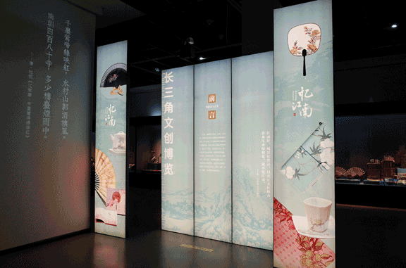 “江南好,風(fēng)景舊曾諳?!苯现?,在粉墻黛瓦的雅韻中,在吳儂軟語(yǔ)的溫柔里,在器物工藝的精妙間。 12月1日至12月14日,浙江省博物館(孤山館區(qū)·浙江西湖美術(shù)館)展出“憶江南——長(zhǎng)三角文創(chuàng)博覽”。長(zhǎng)三角三省一市博物館文創(chuàng)聯(lián)盟成員浙江省博物館、上海博物館、南京博物院、安徽博物院全體參展,中國(guó)絲綢博物館、浙江自然博物院、杭州博物館等浙江省文瀾閣博物館商店聯(lián)盟單位成員積極參與。 江南文化是長(zhǎng)三角地區(qū)的共有基因、精神紐帶,浙江省博物館積極響應(yīng)國(guó)家《長(zhǎng)江三角洲區(qū)域一體化發(fā)展規(guī)劃綱要》,推動(dòng)文化資源優(yōu)化配置,積極傳播江南文化的創(chuàng)新發(fā)展理念,加強(qiáng)長(zhǎng)三角三省一市博物館文創(chuàng)聯(lián)盟品牌影響力,共同打造江南文化區(qū)域特色文化產(chǎn)品。 在浙江省文物局的大力支持下,浙江省博物館牽頭的長(zhǎng)三角三省一市博物館文創(chuàng)聯(lián)盟攜手浙江省文瀾閣博物館商店聯(lián)盟,由金螳螂文化深化設(shè)計(jì)打造“憶江南——長(zhǎng)三角文創(chuàng)博覽”。 走進(jìn)“憶江南——長(zhǎng)三角文創(chuàng)博覽”,恍然有穿越時(shí)空之感。此次展出文創(chuàng)產(chǎn)品共計(jì)九百余件,涵蓋了生活家居、文房用品、服裝飾品、數(shù)碼3c、工藝陶瓷類(lèi)、絲織刺繡類(lèi)、飲品類(lèi)等等,不僅種類(lèi)豐富,且設(shè)計(jì)新穎巧妙、色彩奪人眼球,使人目不暇接,堪稱(chēng)是一場(chǎng)江南傳統(tǒng)文化在新時(shí)代語(yǔ)境下的展示盛宴。 融文物元素于紋飾主題,將形、色、光、影完美統(tǒng)一,設(shè)計(jì)簡(jiǎn)約而不簡(jiǎn)單。金螳螂文化以展品呈現(xiàn)為本,輔以空間氛圍營(yíng)造,展現(xiàn)文創(chuàng)之創(chuàng)新與趣味,使觀眾置身于古今交錯(cuò)的中華美學(xué)集合空間。