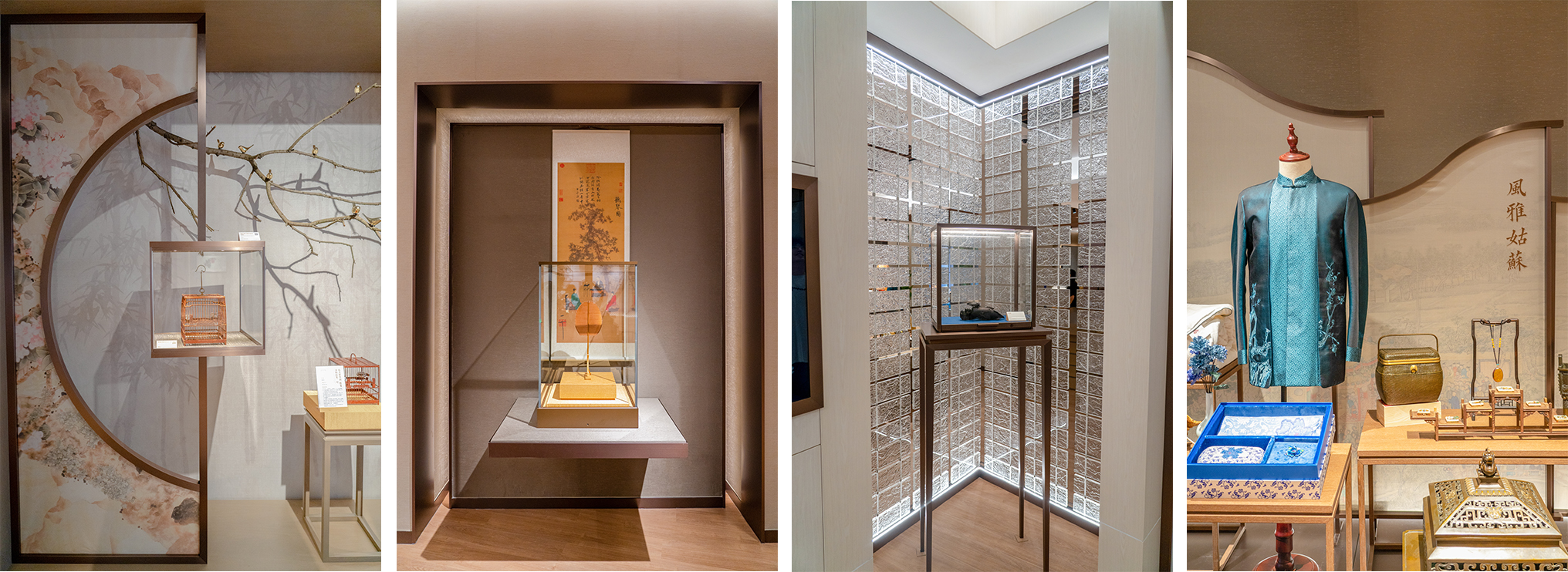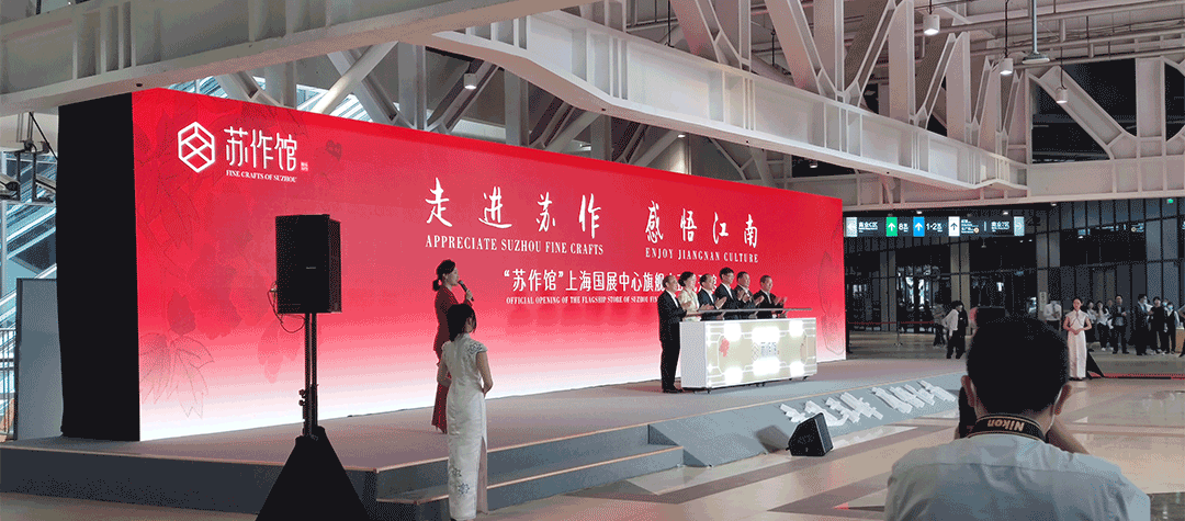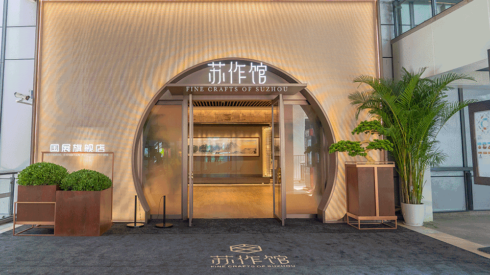 Gold Mantis 金螳螂文化傾力打造 展/現/江/南/文/化/新/價/值 (陶欣宇 展館完工視頻) 蘇作匠心 蘇作館正式開館 今天(5月26日),“蘇作館”上海國展中心旗艦店正式開館,12個蘇作門類的200多件藝術作品精彩亮相。江蘇省委常委、蘇州市委書記許昆林,中國工藝美術協(xié)會常務副會長、中國工藝(集團)副董事長張紅出席活動并致辭。上海市副市長陳通,蘇州市人大常委會主任陳振一,市政協(xié)主席周偉強出席活動。 江蘇省委常委、蘇州市委書記許昆林在致辭中代表蘇州市委市政府對上海及社會各界長期以來給予蘇州發(fā)展的大力支持表示感謝。 許書記表示,設立蘇作館就是要依托上海國展中心這個世界級“展廳”,加快打造展示江南文化魅力、宣傳蘇州城市形象的重要窗口和展銷蘇工蘇作的最高級平臺。 蘇州將以實施文化產業(yè)倍增計劃為抓手,深入挖掘“蘇工蘇作”豐富內涵,努力將“蘇作館”打造成為蘇工蘇作精品走出蘇州、面向全球的“一號店”,讓“蘇作館”成為展示蘇州千年古城燦爛輝煌的最美窗口。 儀式后,嘉賓代表共同參觀了“蘇作館”上海國展中心旗艦店。 商務部駐南京特派員王選慶,商務部進博局副局長、國展中心董事長孫成海,上海虹橋商務區(qū)管委會黨組書記、常務副主任閔師林,日本國駐上海大使銜總領事磯俁秋男,大韓民國駐上海總領事金勝鎬,意大利駐滬總領事陳琪以及上海市、江蘇省有關部門負責同志,蘇州市領導黃愛軍、金潔、顧海東、楊知評、王飏,市政府秘書長周偉,各縣級市(區(qū))和市有關部門主要負責同志,首批入駐“蘇作館”的中國工藝美術大師、非遺傳承人代表等參加活動。 金螳螂文化董事長楊震陪同參觀 金螳螂文化作品得到領導們的高度贊賞。金螳螂文化通過“蘇作館”項目的精心打造,傳承與發(fā)揚江南文化,助力打響江南文化品牌。 部分新聞素材來源:蘇州新聞、蘇州日報公眾號 “最江南”的設計 助推江南文化 “蘇作館”坐落于上海國家會展中心,場館面積1200平米,歷時五個月精心打造。館內規(guī)劃設計有蘇宮區(qū)、大師精品區(qū)、大師衍生品區(qū)、蘇工蘇作演藝區(qū)、直播間等功能區(qū)。 首批展銷作品涵蓋蘇繡、緙絲、玉雕、核雕、蘇扇、明清家具、蟋蟀盆、鳥籠、仿古銅器等12個蘇作門類,收錄了姚建萍、邢偉中、鐘錦德、蔣喜、鄒英姿、錢小萍、楊曦、姚惠芬、周建明、宋水官等36位工藝美術大師和非遺傳承人的200多件藝術精品。 首批展銷作品:200多件藝術精品 經過600余年的歲月洗禮,蘇工蘇作依舊光輝燦爛。金螳螂文化運用古典園林營造手法進行藝術化空間處理,提煉富于特色的江南自然及人文元素,通過現代美學的整體設計,充分展現“雅、精、細、巧”的蘇作共性。 蘇作館:多媒體生動展現蘇作精巧 “蘇作館”將堅持傳承弘揚蘇作文化,拓展深耕蘇作市場,積極主動融入長三角一體化發(fā)展戰(zhàn)略、深度對接上海,用好進博會等各類大型展會舉辦、人流量大等優(yōu)勢,加強與互聯網頭部平臺的合作,積極面向國內、國際市場集中展銷蘇工蘇作藝術精品。