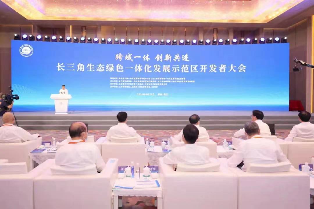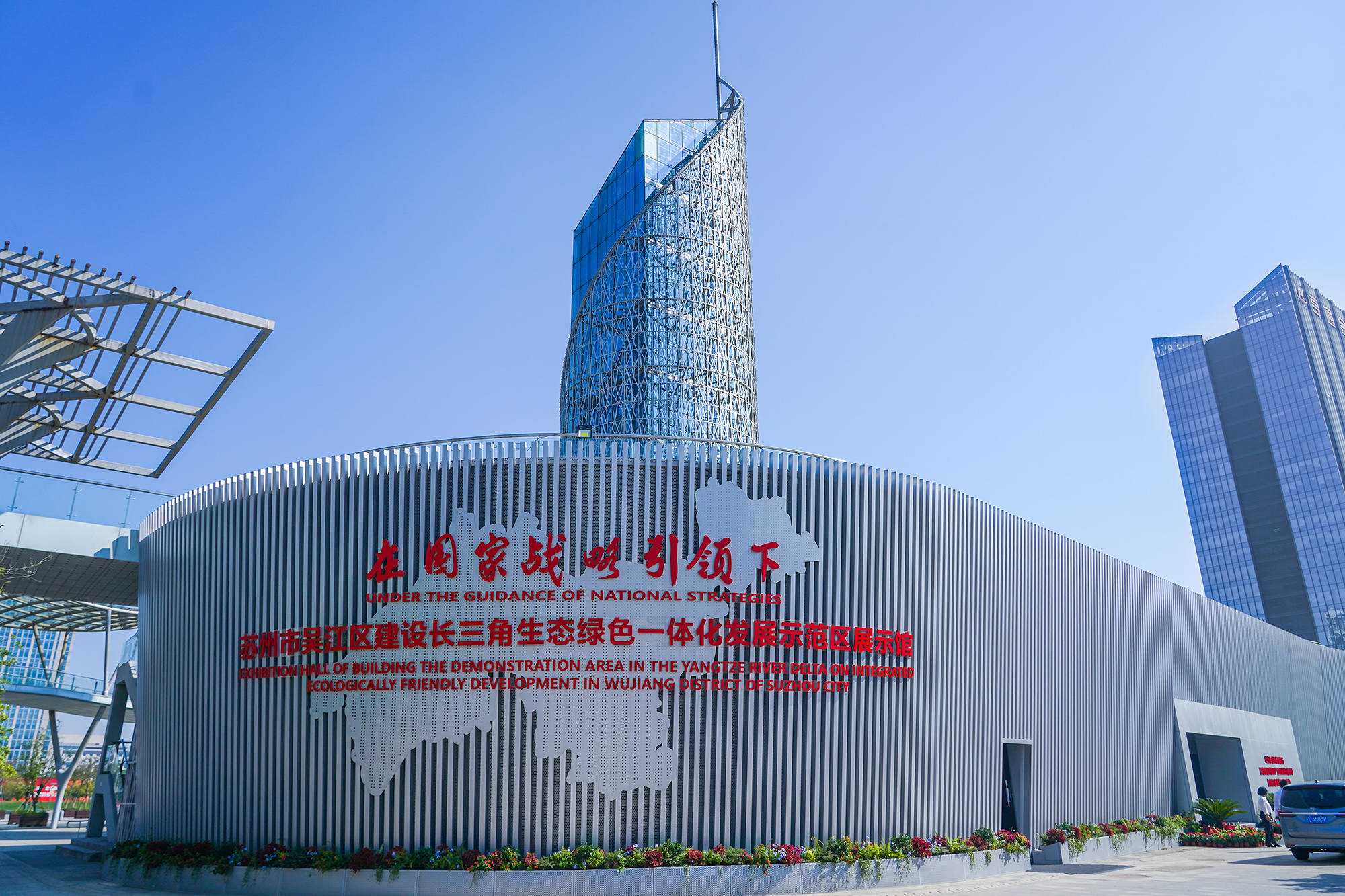 Gold Mantis 在青浦、嘉善、吳江建設(shè)長三角生態(tài)綠色一體化發(fā)展示范區(qū),這是一體化制度創(chuàng)新的試驗田,黨中央支持你們大膽試、大膽闖、自主改。 ——習近平 9月23日,2021年長三角生態(tài)綠色一體化發(fā)展示范區(qū)開發(fā)者大會在蘇州市吳江區(qū)舉行,共謀示范區(qū)建設(shè)大計,共促一體化制度創(chuàng)新。 蘇州市吳江區(qū)建設(shè)長三角生態(tài)綠色一體化發(fā)展示范區(qū)展示館作為開發(fā)者大會現(xiàn)場參觀的點位之一,從今日起正式投入使用。 江蘇省委副書記、省長吳政隆出席會議并講話。江蘇省委常委、常務副省長樊金龍主持。上海市委常委、常務副市長陳寅,浙江省委常委、常務副省長陳金彪,江蘇省委常委、蘇州市委書記許昆林致辭。江蘇省政府秘書長陳建剛、副秘書長張葉飛;上海市政府副秘書長、市發(fā)展改革委主任,一體化示范區(qū)執(zhí)委會主任華源;浙江省政府副秘書長周日星;蘇州市委副書記、代市長吳慶文出席會議;吳江區(qū)委書記李銘在會上作主題發(fā)言。 EXHIBITION HALL 長三角一體化示范區(qū) (吳江)建設(shè)展示館 NATIONAL STRATEGIES 會前,領(lǐng)導嘉賓調(diào)研了由金螳螂文化出品的蘇州市吳江區(qū)建設(shè)長三角生態(tài)綠色一體化發(fā)展示范區(qū)展示館等項目,深入了解吳江在推進一體化制度創(chuàng)新、重大項目建設(shè)等方面的最新成果。 蘇州市吳江區(qū)建設(shè)長三角生態(tài)綠色一體化發(fā)展示范區(qū)展示館全景展示了長三角一體化發(fā)展戰(zhàn)略提出以來,吳江地區(qū)的堅決貫徹與生動實踐。 9月23日,領(lǐng)導嘉賓參觀調(diào)研展館 蘇州市吳江區(qū)建設(shè)長三角生態(tài)綠色一體化發(fā)展示范區(qū)展示館位于蘇州市吳江區(qū)吳江大廈南廣場,項目改建面積約1330平米。 展館以“潮起長三角,奮進新時代;打造創(chuàng)新湖區(qū),建設(shè)樂居之城;踐行國家戰(zhàn)略,扛起時代使命”為主題版塊串聯(lián)起整體內(nèi)容,通過圖文、多媒體結(jié)合的方式引領(lǐng)參觀者層層深入地了解長三角一體化示范區(qū)的政策實踐,以及富于地域特色的“吳江探索”。 金螳螂文化設(shè)計團隊充分利用空間特點,對展館建筑柱體進行了包裝處理,實現(xiàn)視覺的無柱化,使空間更開敞大氣; 根據(jù)內(nèi)容需求,在展陳中心區(qū)域設(shè)置沙盤展示區(qū),形成展陳空間的核心展項與空間眼。 經(jīng)年的潛心籌備,數(shù)月的精心打磨,金螳螂文化將“生態(tài)”、“綠色”理念融入蘇州市吳江區(qū)建設(shè)長三角生態(tài)綠色一體化發(fā)展示范區(qū)展示館的實施,致力于為吳江打造綠色創(chuàng)新發(fā)展新高地提供最佳展示空間。