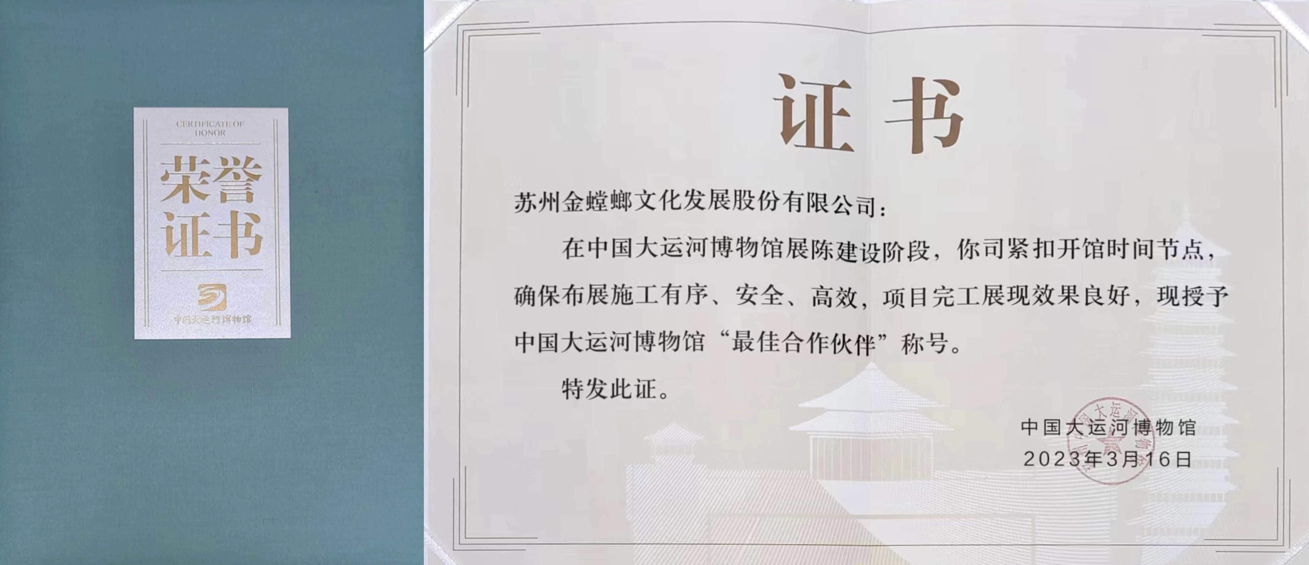 踐行習(xí)近平總書記“保護(hù)好、傳承好、利用好大運(yùn)河這一祖先留給我們的寶貴遺產(chǎn)”的重要指示,增強(qiáng)大運(yùn)河博物館聯(lián)盟的凝聚力,促進(jìn)運(yùn)河沿線相關(guān)場館的特色開發(fā)和資源互通。 3月17日—18日,“鑄就文化新輝煌——國家文化公園內(nèi)博物館建設(shè)”學(xué)術(shù)研討會暨大運(yùn)河博物館聯(lián)盟代表大會在揚(yáng)州中國大運(yùn)河博物館舉辦。國家文物局黨組副書記、副局長顧玉才,中國博物館協(xié)會理事長劉曙光等領(lǐng)導(dǎo)出席。 國家文物局黨組副書記、副局長顧玉才充分肯定了大運(yùn)河博物館聯(lián)盟成立以來做出的成績,并指出,聯(lián)盟各成員在助力國家文化公園建設(shè),加強(qiáng)文物和文化遺產(chǎn)保護(hù)、傳承、展示、傳播中的積極作用時(shí),要加強(qiáng)統(tǒng)籌、科學(xué)定位、信息互聯(lián),做到融合發(fā)展、特色發(fā)展和協(xié)同發(fā)展。 聯(lián)盟代表大會上,代表們對2022年聯(lián)盟工作總結(jié)、2023年工作計(jì)劃以及《大運(yùn)河博物館聯(lián)盟章程》進(jìn)行審議,選舉揚(yáng)州中國大運(yùn)河博物館館長鄭晶為大運(yùn)河博物館聯(lián)盟秘書長,同時(shí)還明確了“洛陽隋唐大運(yùn)河文化博物館”為下一年聯(lián)盟代表大會舉辦地。 會議期間舉行了“中國大運(yùn)河博物館最佳合作伙伴授予儀式”,金螳螂文化獲評“最佳合作伙伴”。 揚(yáng)州中國大運(yùn)河博物館坐落于江蘇省揚(yáng)州市三灣古運(yùn)河畔,總面積約8萬平方米,常設(shè)展覽喜獲第十九屆(2021年度)全國博物館十大陳列展覽精品獎。 河坊街市,張燈結(jié)彩;坐聽雨聲,行觀四季;多樣體驗(yàn),皆聚于此。 金螳螂文化匠心出品“因運(yùn)而生——大運(yùn)河街肆印象”、“大運(yùn)河非物質(zhì)文化遺產(chǎn)”、“運(yùn)河濕地尋趣”3個(gè)展覽,全力呈現(xiàn)大運(yùn)河的文化底蘊(yùn)與文化價(jià)值,助力傳承運(yùn)河文化、講好運(yùn)河故事、傳播運(yùn)河聲音。 四個(gè)月時(shí)間,三個(gè)大體量展廳,設(shè)計(jì)創(chuàng)意驅(qū)動、施工布展落地,金螳螂文化的設(shè)計(jì)與施工團(tuán)隊(duì)嚴(yán)格把控各項(xiàng)節(jié)點(diǎn),力求呈現(xiàn)更豐富、多元的大運(yùn)河,給公眾帶來全新的感官體驗(yàn),助力傳承大運(yùn)河文化。 讓設(shè)計(jì)更有文化,讓空間更有故事。金螳螂文化將以創(chuàng)新設(shè)計(jì)、專業(yè)實(shí)施、誠心服務(wù)持續(xù)深度探索文化展示行業(yè),做文化與藝術(shù)的傳播者。