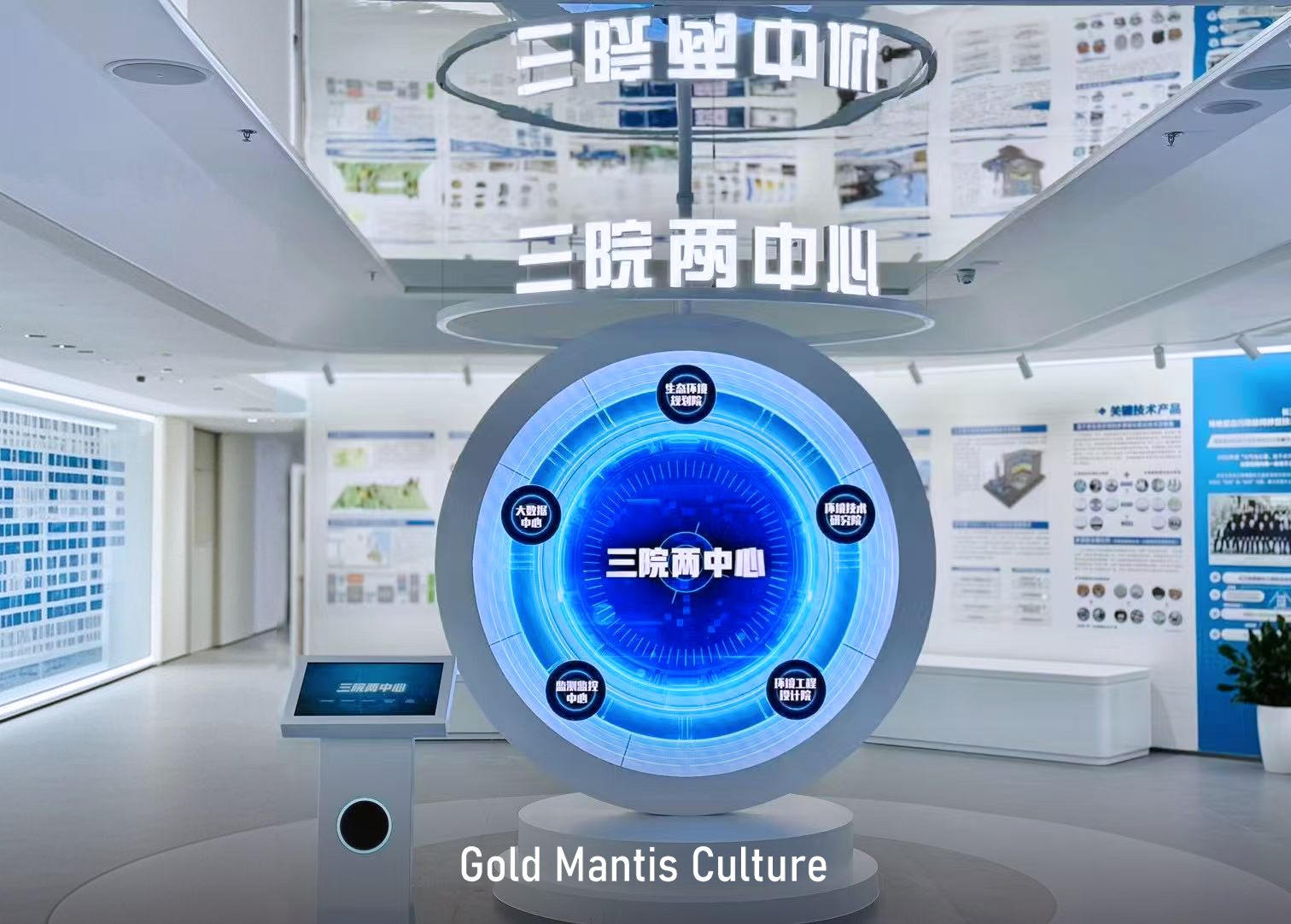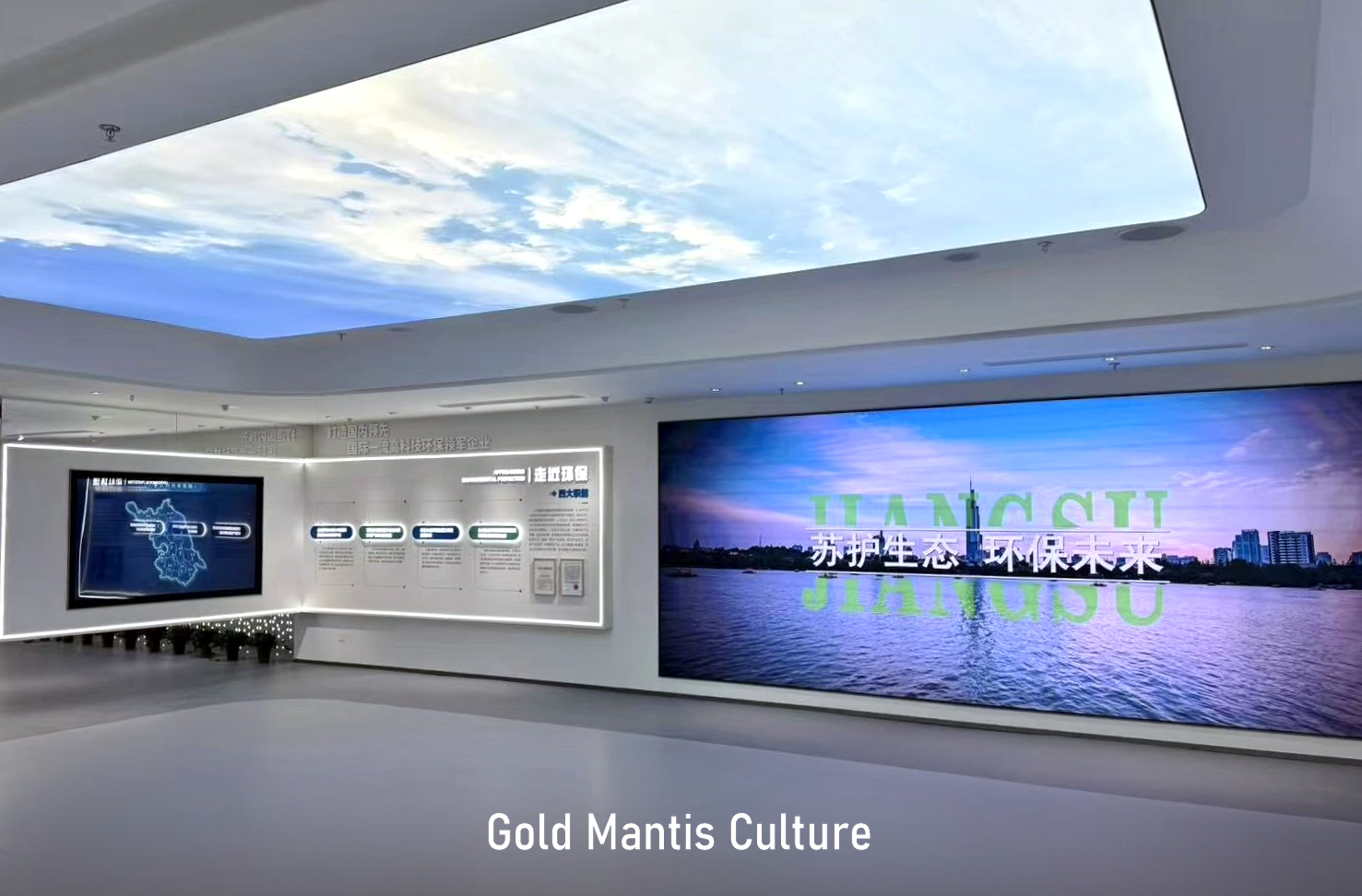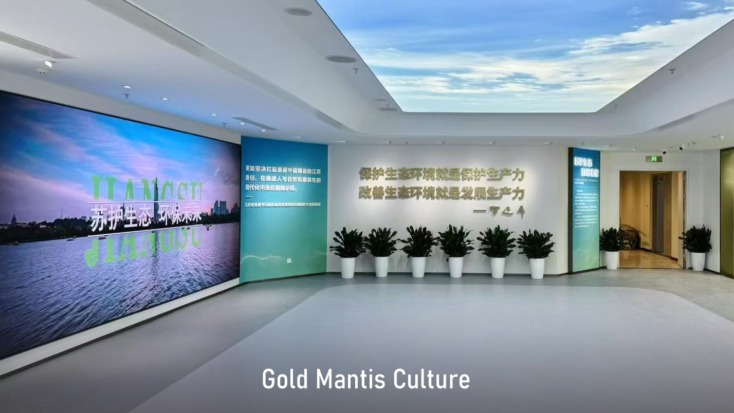 萬里長江順流而東 南京江心洲上春意盎然 在這座“生態(tài)科技城、低碳智慧島” 一批高端研發(fā)機(jī)構(gòu)相繼落地 由金螳螂文化設(shè)計(jì)實(shí)施的 江蘇省環(huán)保集團(tuán)江心洲科創(chuàng)基地展館 揭開神秘面紗 江蘇環(huán)保集團(tuán)科技創(chuàng)新基地,位于中新南京生態(tài)科技島,總建筑面積約14.7萬平方米,由多功能辦公科研塔樓、環(huán)保創(chuàng)新實(shí)驗(yàn)裙樓、下沉活動(dòng)空間等部分組成,著力打造產(chǎn)學(xué)研用一體化的高能級(jí)科技創(chuàng)新平臺(tái)載體和高科技環(huán)保產(chǎn)業(yè)集群。 步入展廳,映入眼簾的是習(xí)近平總書記對(duì)保護(hù)生態(tài)環(huán)境、建設(shè)美麗中國的指示。 頂面提取自然元素,打造“天幕”,帶給觀眾自然生態(tài)感官體驗(yàn)。 提質(zhì)向新,逐綠而行。以互動(dòng)屏幕方式展示三院兩中心架構(gòu)及介紹。 以藍(lán)天碧水凈土、無廢城市、數(shù)字環(huán)保為落點(diǎn),重點(diǎn)展示集團(tuán)業(yè)務(wù)及綠色產(chǎn)業(yè)、裝備制造相關(guān)內(nèi)容。