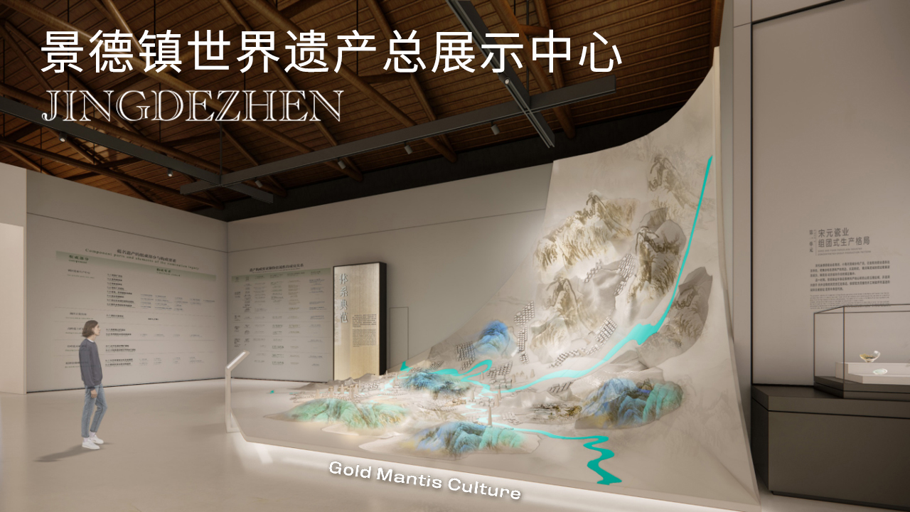 江西景德鎮(zhèn) 泥與火造就的千年瓷都“桃花源” 涵養(yǎng)著文化自信的“china夢” 金螳螂文化設(shè)計(jì)實(shí)施 “景德鎮(zhèn)手工瓷業(yè)遺存” 世界文化遺產(chǎn)專題展 跨越千年時光,感受瓷都溫度 2023年10月11日,習(xí)近平總書記親臨陶陽里歷史文化街區(qū)考察調(diào)研,先后走進(jìn)南麓遺址、陶瓷博物館、明清窯作群,饒有興趣地了解制瓷技藝流程、陶瓷文化傳承創(chuàng)新和對外交流等情況。 習(xí)近平總書記在考察調(diào)研時指出,中華優(yōu)秀傳統(tǒng)文化自古至今從未斷流,陶瓷是中華瑰寶,是中華文明的重要名片。 習(xí)總書記在陶陽里 TAOYANG ALLEY 申 遺 項(xiàng) 目 景德鎮(zhèn)手工瓷業(yè)遺存是第一個以制瓷為主題,向世界呈現(xiàn)中國陶瓷文化的申遺項(xiàng)目,以系列遺產(chǎn)的形式,見證景德鎮(zhèn)作為中國乃至世界手工業(yè)時代制瓷技術(shù)的集大成者,展現(xiàn)出中國手工制瓷技術(shù)、瓷器藝術(shù)和制瓷產(chǎn)業(yè)發(fā)展的創(chuàng)新歷程,并對世界瓷業(yè)發(fā)展和文明交流互鑒產(chǎn)生的深遠(yuǎn)影響。 本展覽以世界遺產(chǎn)為視角,圍繞“景德鎮(zhèn)手工瓷業(yè)遺存”,展現(xiàn)以景德鎮(zhèn)為代表的中國手工制瓷技術(shù)、瓷器藝術(shù)和制瓷產(chǎn)業(yè)發(fā)展的創(chuàng)新歷程和卓越成就;景德鎮(zhèn)瓷業(yè)對世界瓷業(yè)發(fā)展、文明交流互鑒、以及中華文明與文化的全球表達(dá)產(chǎn)生的深遠(yuǎn)影響。 項(xiàng)目位于景德鎮(zhèn)建國瓷廠舊址,2021 年經(jīng)更新改造為景德鎮(zhèn)江西畫院美術(shù)館,設(shè)計(jì)展區(qū)主要利用館內(nèi)一層的南區(qū)和西區(qū)。 項(xiàng)目以遺產(chǎn)地居民和國內(nèi)外訪客為主要受眾,從世界文化遺產(chǎn)的價值語境出發(fā),以“景德鎮(zhèn)手工瓷業(yè)”的產(chǎn)業(yè)基礎(chǔ)、創(chuàng)新拓展、成就影響、傳承發(fā)展為敘事線索,凸顯“景德鎮(zhèn)手工瓷業(yè)遺存”對人類文明的世界性貢獻(xiàn)。
